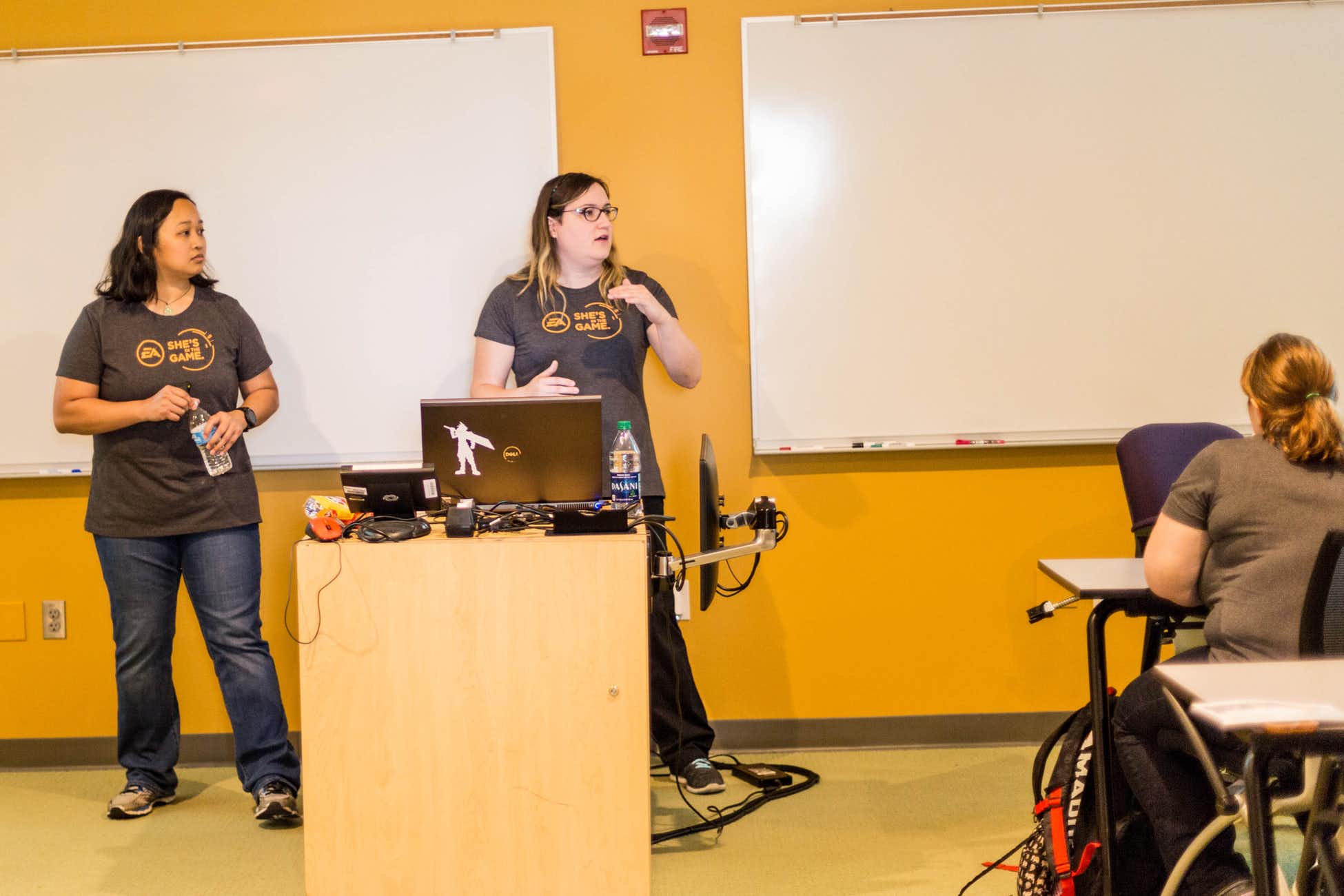 The day began with EA and FIEA volunteers checking-in all participants. Then EA Sr. Producer Lina Ingsvardottir gave a powerful talk on her journey to becoming the highest-ranking woman producer at EA and why girls should make more games.